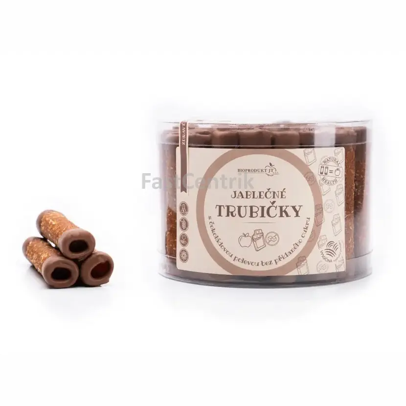 Jablečné trubičky s čokoládovou polevou bez přidaného cukru BIOPRODUKT JT 540 g (43 ks)