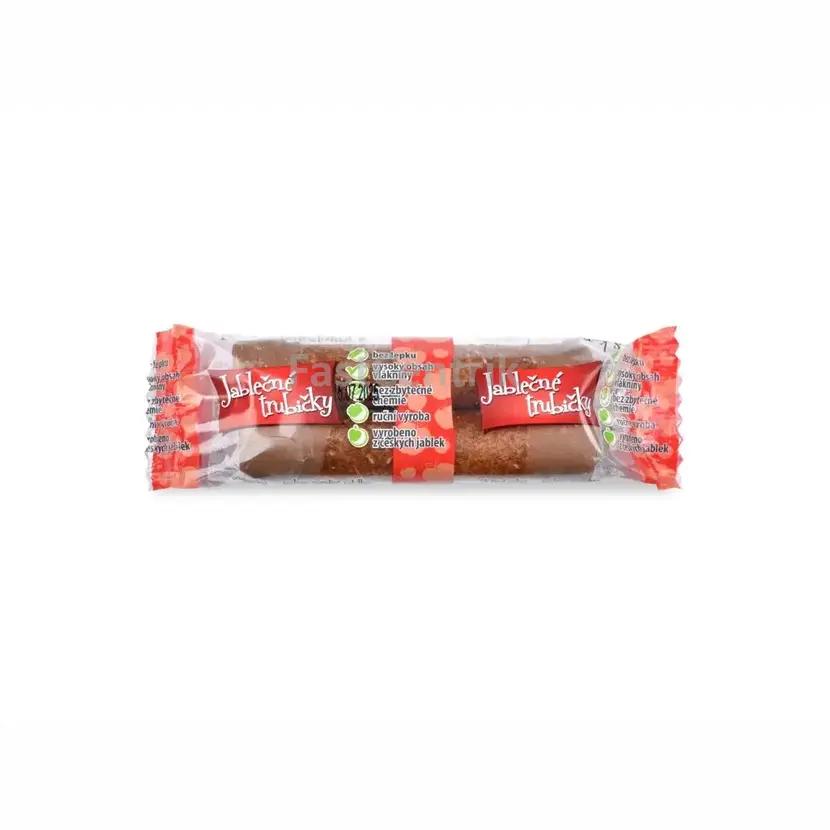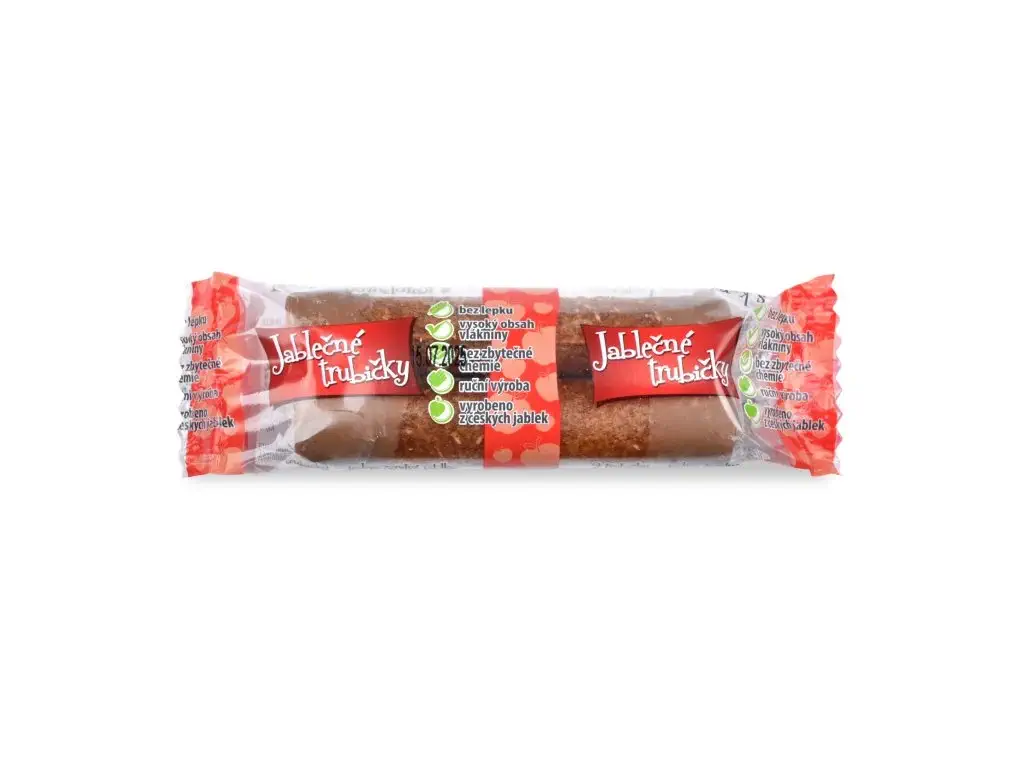 Tato praktická svačinka obsahuje dvě trubičky vyrobené z jablečné dřeně, která prošla unikátním procesem na vlastním homogenizéru. Tato technologie narušuje buněčné obaly vlákniny a uvolňuje tak maximum vitamínů a minerálů přímo do ovocné směsi. Šetrné sušení do 42 °C uchovává v trubičkách vysoký podíl antioxidantů a vlákniny v RAW kvalitě, zatímco jemná karobová poleva nabízí přirozeně sladkou, bezkofeinovou alternativu klasické čokolády. Dozdobení strouhaným kokosem dodává této ryze české pochoutce z podhůří Jeseníků jemný exotický nádech.