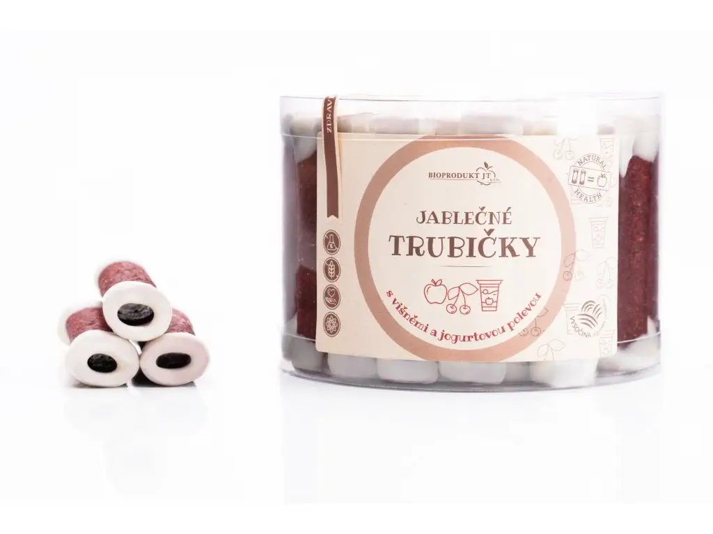 Základem této pochoutky je směs jablek a višní zpracovaná na speciálním homogenizéru, který narušuje buněčné obaly vlákniny a uvolňuje tak cenné živiny přímo do ovocné dřeně. Díky šetrnému sušení v nízkotepelné sušičce si trubičky v RAW kvalitě uchovávají vysoký podíl antioxidantů, vitamínu C a minerálů. Jemná jogurtová poleva od českého výrobce a sypání strouhaným kokosem skvěle doplňují osvěžující chuť višní. Výsledkem je nutričně bohatý a chuťově vyvážený dezert, který představuje to nejlepší z českých sadů v moderním a zdravém provedení.