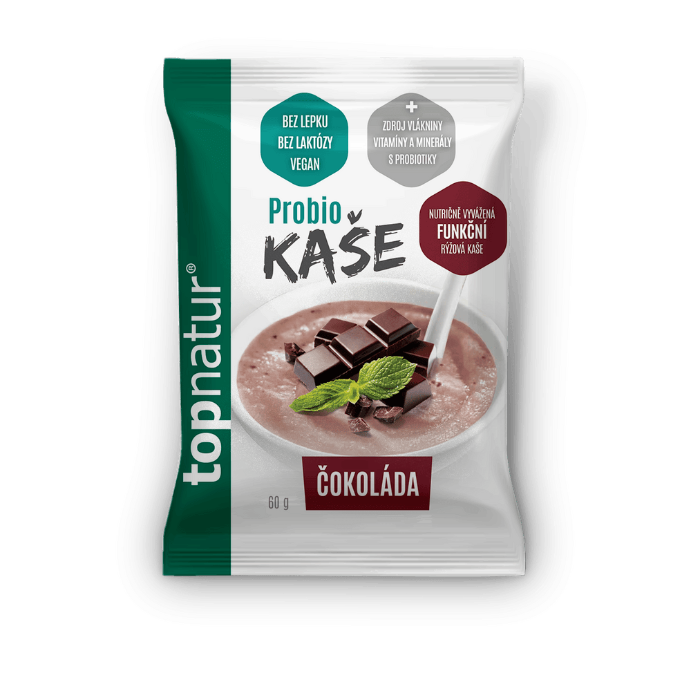 Probio kaše Čokoláda přináší spojení jemné kakaové chuti s benefity probiotických kultur a prebiotické vlákniny inulinu, která podporuje jejich přirozený růst. Je obohacena o široké spektrum vitaminů a minerálů, takže představuje zdravou volbu pro každodenní snídani i svačinu. Díky absenci lepku, laktózy a kaseinu je vhodná pro osoby s výživovým omezením i pro všechny, kteří hledají racionální a lehce stravitelnou potravinu. Skvěle poslouží dětem, seniorům, ale také sportovcům díky své lehkosti a snadné přípravě.